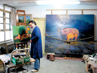 楊大味告訴記者,今年海淀區要成立一個藝術園區,要他們搬過去。已經同他說了好幾次。“藝術家們不是沒有選擇。之所以至今還沒人離開宋莊,是因為宋莊凝聚了我們太多的堅持,每個人都會對這種堅持抱有依戀。”晨報記者 鄒樂文并攝