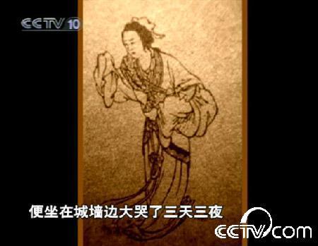 節目指出,第一個記述崩城之事的人,是西漢末年的劉向。他在《烈女傳》中先重述了《左傳》中杞粱妻的故事,然后他繼續寫到:杞粱妻沒有子嗣,娘家婆家也都沒有親屬,夫死之后成了個孤家寡人。杞粱妻“就其夫之尸于城下而哭之”,哭聲十分悲苦,過路人無不感動。十天以后,“城為之崩”。唐代的有關記載,使杞粱妻的故事大變了模樣。杞粱由春秋的齊人變成秦朝的燕人;杞粱妻的名字出現了,她姓孟名仲姿,或姓孟名姜女;杞粱的死因不再是戰死疆場,而是因避役被捉后筑于城墻之內,所以其妻要向城而哭;而筑于城墻之內的死尸實在太多了,只有滴血認骨才能辨別。杞粱妻的故事經過六朝、隋唐時代的加工,把崩城和秦始皇聯系在了一起,這是一個不小的創造。
