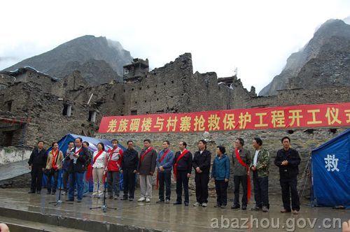 中新網7月17日電 據阿壩州政府網站消息,7月15日上午,國家文物局、四川省政府在阿壩州理縣桃坪羌寨舉行“羌族碉樓與村寨搶救保護工程開工儀式”。
