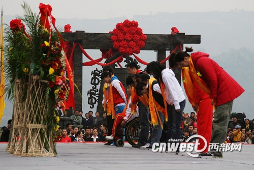 10月7日,以“同享奧運 共祭始祖”為主題的戊子(2008)年重陽節(jié)恭祭軒轅黃帝典禮在陜西黃陵縣隆重舉行。我國11名歷屆奧運冠軍參加了恭祭典禮。