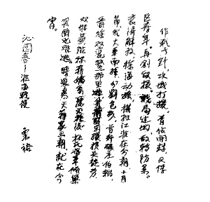 《沁園春·淮海戰役》詞,內容如下:“作戰方針,攻城打援,首占開封。又俘區壽年,再創敵援;戰局過坳,敵轉防御。兗濟解放,徐海動搖,橫掃江淮在今朝。十月節,我大軍南揮,分割包抄。首殲碾莊伯韜,看徐雙甕鱉哪里逃。笑緯國東援,損兵徒勞;雙堆黃維,稱蔣嫡系,覆滅于后。杜氏將軍,傾巢突圍也難逃。時迫矣,滅蔣家王朝,就在今宵。”(粟裕的遺作手跡見上圖)