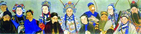 梅蘭芳收藏始于戲畫,藏品中最豐富、最有藝術價值的亦是戲畫。這些戲畫都是照扮演者的真容來描繪的,面貌神情準確逼真。其中,以存留至今的晚清沈蓉圃繪《同光十三絕》尤為珍貴。這十三絕的美稱,代表著13位名伶,當年每位都有一出拿手的名劇(上圖)。