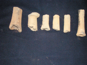遺址從山梁延伸到山坡,地表遺物豐富:陶器均為手制,以?shī)A砂陶為主。該遺址沿用時(shí)間相對(duì)比王家屯東山青銅遺址短一些。從采集的陶器標(biāo)本看,遺址使用年代上限為戰(zhàn)國(guó)早期或春秋晚期,下限為漢初。