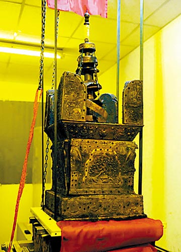 南京古長干寺地宮出土的七寶阿育王塔(見圖)去年11月被取出鐵函后,有關是否進一步開啟阿育王塔的爭論日趨激烈。南京佛教界人士認為,如果不能制定完善的保護方案,開啟阿育王塔不僅會對寶塔本身造成更大的破壞,而且可能會破壞佛教至寶“佛頂真骨”,由此必將嚴重傷害全世界佛教信徒的感情。