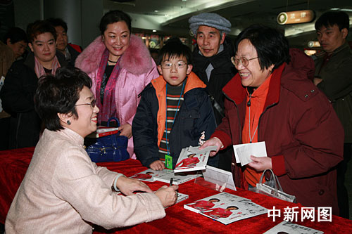 中新網(wǎng)1月19日電 1月17日上午10點30分,北京電子音像出版社在西單圖書大廈舉行《李玉芙——京劇唱腔專輯》簽售儀式。著名京劇表演藝術(shù)家、梅蘭芳親傳弟子、梅派名家李玉芙和著名話劇表演藝術(shù)家石維堅出席了該儀式,F(xiàn)場聚集了眾多李玉芙的忠實觀眾,爭相與心目中的大師合影留念,氣氛十分熱烈。