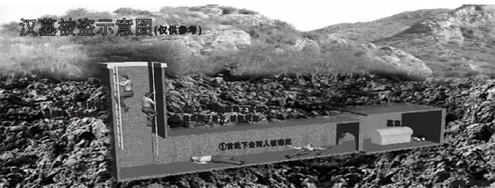 終于,一個17米深的圓洞打通了。陳冬下去勘查了一番,隨后,又要求這些河南工人繼續(xù)挖掘,但挖掘的方向改變了,陳冬要求挖一個橫向的通道。這樣,這個盜墓通道就成了“L”形。而這個橫向的通道可以直達(dá)墓門。