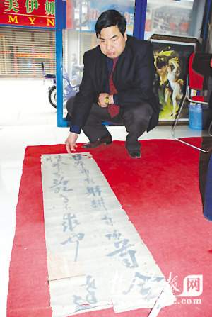 在北京前后呆了十多天,他們請教了故宮博物院六位字畫專家,對方以岳飛是否有真跡留存于世還存在爭議為由沒有貿(mào)然作出判斷,但他們建議杭從明帶字畫到中國歷史博物館先進(jìn)行紙張甄別。在中國歷史博物館,專家對字畫的棉麻紙張進(jìn)行了碳化測定,初步確認(rèn)該紙張產(chǎn)自宋代。至于是否為岳飛真跡,專家也無法確定。昨日江都市博物館夏根林館長表示,通常情況下,只要紙張確認(rèn)為宋代,那么是岳飛真跡的可能性就相當(dāng)大了,現(xiàn)在鑒定界也有從紙張的風(fēng)化程度來確認(rèn)是否真跡的先例。從另外一個(gè)角度講,眼下市場上即使是五尺的清代空白紙張,價(jià)值也達(dá)數(shù)千元,更何況宋代的紙張了。