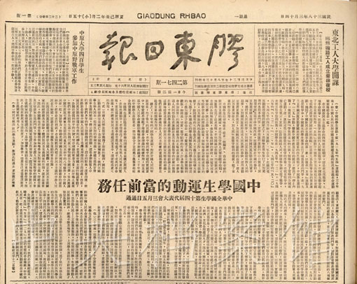 9. 1949年3月14日,《膠東日報》發表的中國學生運動的當前任務