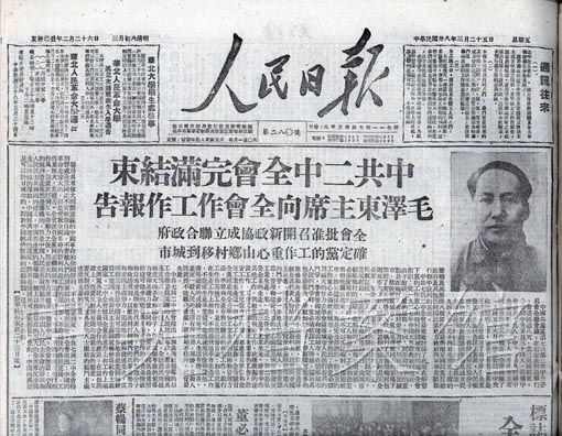 3.1949年3月25日,《人民日報》關于中共七屆二中全會的報道