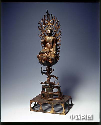 據(jù)浙江省博物館工作人員介紹,安放在雷峰塔天宮內(nèi)的“五代鎏金純銀阿育王塔”,及其塔內(nèi)供奉舍利的金瓶,在雷峰塔倒塌時(shí),此塔被嚴(yán)重壓扁,2008年底成功修復(fù),因此這次赴臺是在臺灣的首次亮相。而“唐五代鎏金銅釋迦牟尼佛說法像”造型精美,釋迦牟尼佛結(jié)跏趺坐于盤龍托舉的蓮座上,身后是鏤空火焰紋大背光,靜謐的佛、張揚(yáng)的龍、升騰的烈焰,三者的精妙組合成就了一件藝術(shù)佳作。