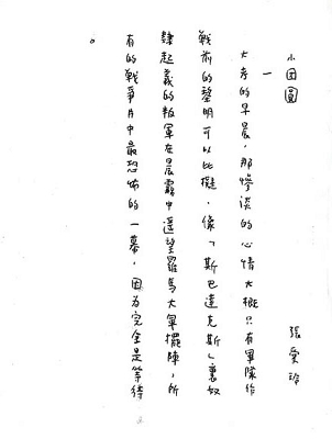這兩個月我一直在忙著寫長篇小說《小團圓》,從前的稿子完全不能用。現在寫了一半。這篇沒有礙語。…… 我在《小團圓》里講到自己也很不客氣,這種地方總是自己來揭發的好。當然也并不是否定自己。