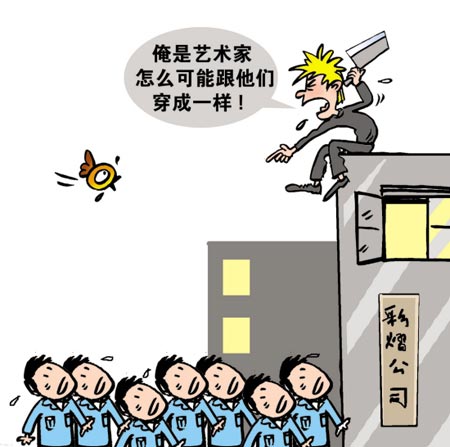 “我是搞藝術的人,喜歡個性張揚,卻偏偏把我整得跟他們一模一樣!”日前,因不滿公司統一制服,且設計提成未給足,廣州某公司工業設計經理彭同學第三次報警,且以跳樓絕食相要挾。