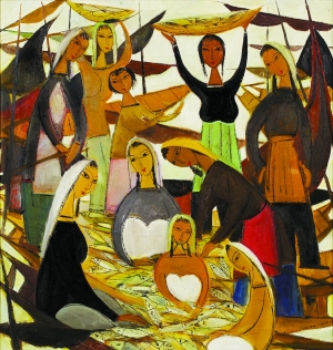 蘇富比稱此次拍賣的《京劇人物》四幅作品是挪威海勒夫婦與林相識后陸續(xù)買的。珍藏近半個世紀(jì)后,去年8月左右,海勒夫婦及其兒子聯(lián)系了蘇富比倫敦古董部,之后又轉(zhuǎn)到香港這邊。而《漁獲》藏家亦是丹麥前駐中國大使畢德森。畢德森在北京結(jié)識了林風(fēng)眠,六十年代回丹麥時帶走了一幅油畫及一幅水墨畫,這幅油畫由畢德森的女兒交給蘇富比拍賣。作品畫于五十年代后期至六十年代初期,當(dāng)時內(nèi)地鼓勵畫家要到鄉(xiāng)間去,接觸農(nóng)民,林風(fēng)眠才開始到農(nóng)村采風(fēng),因此創(chuàng)作了《漁獲》。