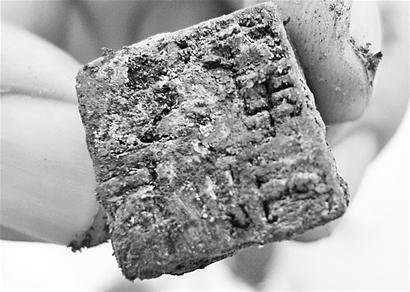 下午5點40分左右,“深褐色”的東西被取出,原來是一把鐵劍。經(jīng)歷2000多年的腐蝕,鐵劍已十分脆弱,從中斷成了兩截。從該劍的形狀上,依然能夠看出該劍當(dāng)時制作的十分講究,劍柄的造型十分清晰,劍箍為青銅制作,雖然已經(jīng)生出銅銹,但依然看出質(zhì)地優(yōu)良。