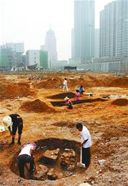 記者在考古發掘開始后不久進入現場,看到了已經清理出來的20多座古墓。據正在現場的市考古研究所技術人員郭俊峰介紹,這個區域已經探知的古墓約40座,已 發掘的有20多座,上到漢唐,下到宋元,時間跨度很大,這說明此區域是具有相當長歷史傳承的墓地。另外發現的10座古窯遺址,也正在清理和研究中。