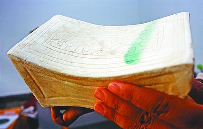 這次發掘的文物有幾件以前在濟南地區很少出土,除了上面說的銅印章,還有兩件宋代陶瓷枕。兩件陶瓷枕中完整的一 件為白釉印花枕,長約20厘米,高10厘米,寬11厘米,兩個枕面一側還有一抹綠色,十分鮮艷。李銘說,這件白釉印花枕所用胎土為高嶺土,文飾清晰,線條 流暢,品相完好,可以說是濟南地區出土的同類器物中最精美的,也體現出宋代人的審美情趣。另一件為三彩獅子牡丹紋枕,出土時殘破,現經整修,基本復原了整 體面貌。這件陶瓷枕的枕面上刻印的是牡丹紋飾,牡丹為紅色,周圍有綠色葉子,顯得很是艷麗。枕身主要的一面為一只堆塑的獅子,形態逼真,富有活力。李銘指 著獅子牡丹紋枕對記者說:“這是一件宋代的三彩器,別看有點殘,但價值比白釉印花枕還要高,因為像這樣做工精美、色彩保存基本完好的三彩陶瓷枕少有出土。 而且這件枕可能是淄博窯的作品,也就是咱們山東自己的窯燒制的,雖然不是著名窯口的產品,但對于山東考古來說具有更高的價值。這樣的陶瓷枕在濟南地區出土 是非常少見的。”