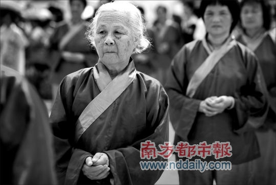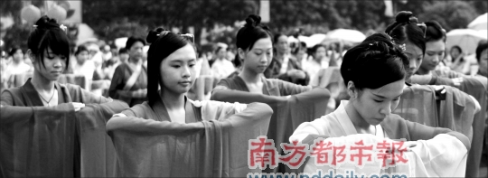 “每走一步、袖子怎么擺動(dòng),都有講究。”廣東省民俗文化研究會(huì)副秘書長、珠村民俗專家潘劍明是儀式主持,他透露,此次演出專門請來“漢禮”專家按歷史傳統(tǒng)還原場面。