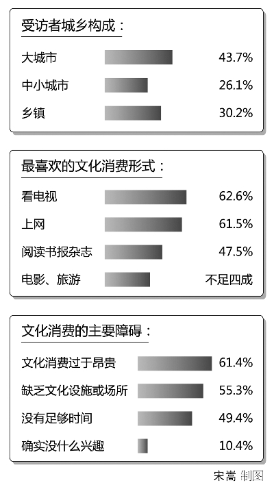編輯點(diǎn)評:看電視、上網(wǎng),是居民文化休閑活動的“主力軍”,折射出我國民眾的文化消費(fèi)形式還較為單調(diào)。