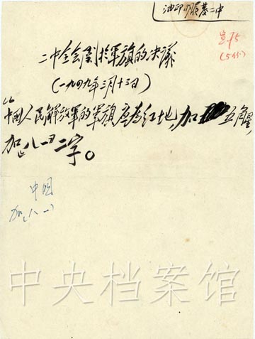 1948年2月,中共中央發出通知,向各中央局、中央分局、各軍區、各野戰軍前委征求中國人民解放軍軍旗、軍徽的具體意見。
