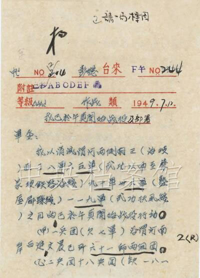 1949年 7月,中國人民解放軍第一野戰軍遵照中共中央、中央軍委的統一部署,開始向大西北進軍,先后進行了扶郿戰役、隴東追擊戰、蘭州戰役、寧夏戰役、進軍河西走廊和進軍新疆。 7月 11日,扶郿戰役開始,到 14日戰役結束,共殲滅胡宗南部主力4個軍共 4.3萬余人,陜中地區解放; 8月 26日,經過激烈攻堅作戰,人民解放軍解放甘肅省會蘭州; 9月 5日,解放青海省會西寧,基本殲滅馬步芳集團; 9月 23日,解放寧夏省會銀川,隨即殲滅馬鴻逵集團; 9月 25、26日陶峙岳、包爾漢先后通電起義,新疆宣告和平解放; 12月陜西、甘肅兩省全部解放,第一野戰軍向西北的戰略進軍取得了殲滅敵軍 3O萬人,解放陜、甘、青、寧、新五省的重大勝利。