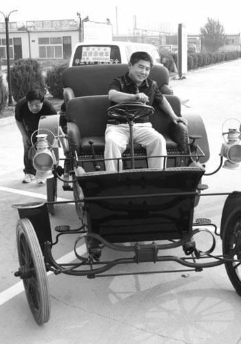 劉先生向記者介紹,這次博覽會(huì)展出的這臺(tái)車是復(fù)制品,真車是國(guó)家一級(jí)保護(hù)文物,停在北京頤和園內(nèi)。真車是無價(jià)之寶,而這輛車也是他好不容易得來的,但他拒絕透露此車的來源,也不愿意表露是否愿意出賣。
