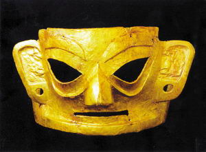 當(dāng)我們凝視三星堆出土的那尊據(jù)說(shuō)是蠶叢的驚世駭俗的青銅面具時(shí),那突出的眼睛里仿佛閃爍著一串串永遠(yuǎn)無(wú)解的密碼。