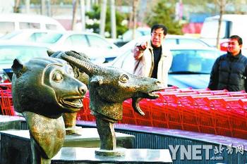 據了解,該超市于本月11日剛剛開業。超市負責人告訴記者,“十二獸首”并非超市所建,而是屬于超市所在的“城南大道”大廈。負責該大廈物業工作的京豐物業公司張經理說,這十二個獸首是開發商在修建大廈之初就同時建造的。