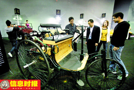 彈孔連珠式散布的毛澤東座駕,威風凜凜的周總理座駕紅旗CA770,還有奔馳1號——人類汽車制造史上的第一輛汽車……本屆奢侈品展人氣最旺當屬老爺車展區。今年,主辦方花費過百萬元搜羅、租賃20輛名人老爺車,以及孫中山、周恩來、朱德、彭德懷、慈禧、溥儀等人當年的座駕。
