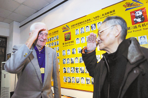 昨日,渝中區(qū)飛虎隊博物館內(nèi),龍啟明與鮑勃·莫里森相見,兩人互敬軍禮。