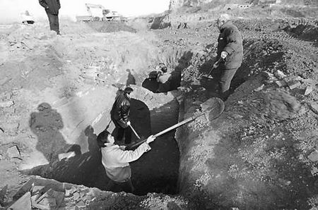 昨日,南水北調主干渠焦作Ⅱ段九里山附近發現一漢墓群,焦作市文物勘探隊工作人員正在對墓群進行搶救性發掘,目前已出土有價值文物二十余件。