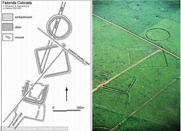 據(jù)英國(guó)《每日郵報(bào)》1月6日?qǐng)?bào)道,巴西和玻利維亞邊境地區(qū)大片森林被砍伐,露出的土地上竟出現(xiàn)大約260條大街、溝渠或圍墻形狀的遺跡。它們或呈圓形,或呈方形,中間有路相通。科學(xué)家說(shuō),這可能是一個(gè)失落文明存在的證據(jù)。