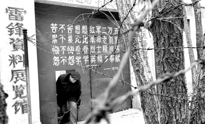 因為沒有錢,房子已經年久失修,展覽館內外透著艱苦樸素,正如雷鋒精神。院外雜草荒涼,屋內墻體裂了縫,墻上的標語褪了色,連電燈也“罷工”。