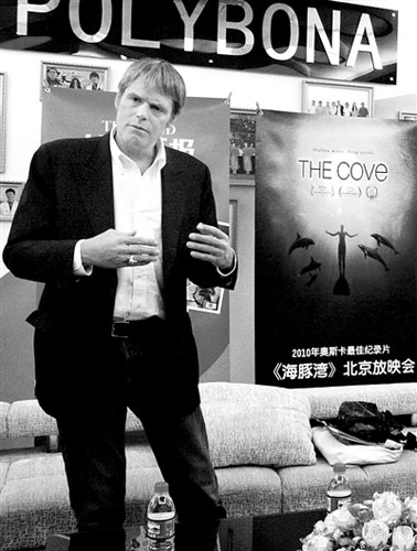在放映活動開始前,《海豚灣》制片人漢布爾頓接受了數家媒體記者的采訪,并回答了本報記者提出的問題。