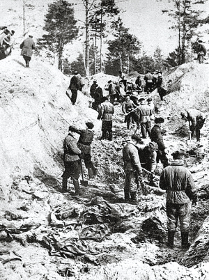 1943年4月13日,柏林電臺向全世界報告的一則消息,說在蘇聯斯摩棱斯克附近的卡廷森林發現了一批埋有成千上萬波蘭軍官尸體的巨大墳墓,他們都是被人有步驟并且熟練地處決的。