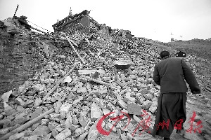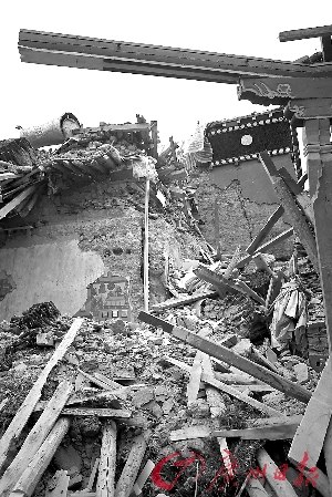 現(xiàn)場(chǎng) 大經(jīng)堂全部坍塌