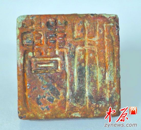 考古人員認(rèn)真地辨認(rèn)后,發(fā)現(xiàn)這是一枚銅質(zhì)的篆文陰刻印章,一個(gè)篆體“休”字尚好辨認(rèn),可另外一個(gè)字體復(fù)雜的字又是什么?