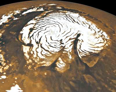 火星北極冰冠(蓋)有兩個奇異的特征,即存在著一條規(guī)模勝過大峽谷的深谷和一系列的螺旋形低谷。人們發(fā)現(xiàn)這兩個特征40年來,始終沒有能準確地解釋它們形成的原因。不過這已經(jīng)成為過去,美國科學家表示,他們成功地再現(xiàn)了火星北極冰冠兩特征形成過程,從而解開了困擾人們多年的謎團。