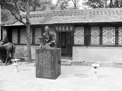 馬致遠故居在韭園村的西落坡村。故居坐西朝東,是一座大四合院。故居門前有小橋流水,門前的影背墻上現在寫著“馬致遠故居”,并有馬致遠生平介紹。繞過影壁跨過一間東房的大門就來到院子里。院子很大,西北東南四面都有房間,每邊為三五間。因長久沒有人居住,現在破舊得很厲害,院內野草叢生,雜物堆放。馬致遠的名曲《天凈沙·秋思》中的佳句廣為人知——“枯藤老樹昏鴉,小橋流水人家。古道西風瘦馬,夕陽西下,斷腸人在天涯。”細細地觀察,發現故居門前的景物和《天凈沙·秋思》的意境很相似。