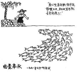 1957年,華君武推出了“人民內部諷刺漫畫”。他針對大躍進浮夸風創作了《疲勞過度癥》,針對動不動給人扣大帽子創作了《杜甫檢討》,針對長篇空洞發言創作《誤人青春》,針對生造簡化字創作《倉頡認字》,針對多子女創作《大“小家庭”》,批評相聲水平不高創作了《聽相聲?》等,都給讀者留下了極為深刻的印象。“內部諷刺漫畫”在“文革”中成為“罪證”,遭到長期批判,華君武被迫擱筆10年,但”文革“后,這把”匕首“依然鋒芒犀利,創作出一系列批評諷刺時弊和人性弱點的漫畫。
