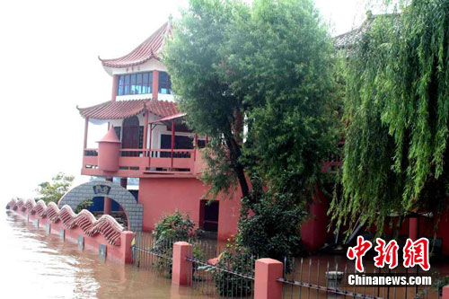 20日,中新社記者來到九江縣江新洲渡口,江邊上的一座剛奠基不到半年的三圣寺已經(jīng)被洪水浸泡,奔涌的長(zhǎng)江水正滾滾東逝,江面上穿梭著幾艘航船,渡口邊一艘渡船上走下上百名乘客,秩序井然。