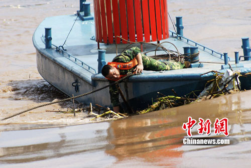 因此次洪峰對庫區航道的影響相對重慶主城較小,因此庫區萬州段航道沒有實施禁航,江面上還有大量的船只通行。為此,萬州的航道職工每天將花去近16小時專門清除懸掛在航標上的渣草,恢復被渣草掀翻的航標,以免影響輪船航行的安全。