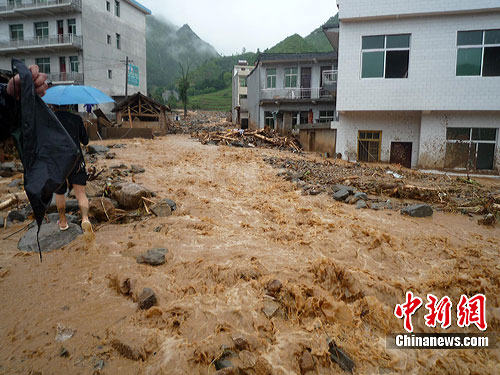 中新網西安7月27日電(記者 冽瑋 通訊員何衍貴)7月24日凌晨2時許,地處陜西省南部的商洛市丹鳳縣竹林關鎮遭遇山洪、泥石流襲擊,洪水退去后,原來平整的街道被厚度近2米的淤泥覆蓋,十噸以上的山石隨處可見。截至7月26日,暴雨致使該鎮失蹤9人死亡1人,經濟損失目前尚無法估計。