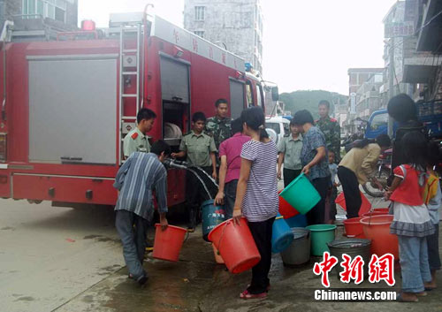 中新網廣州9月24日電(張乾鑠 孫江敏 張曉豐)記者24日下午從廣東省消防總隊獲悉,22日13時起至今,廣東茂名消防支隊先后調動河東、特勤、紅旗、茂南、化州、信宜等6個中隊、7輛消罐車、40名消防官兵,連續3日為災區群眾送水、送糧,幫助災民渡過難關。