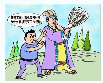 “諸葛亮出山前也沒帶過兵,為什么你們一定要求我有工作經驗?”昨(18)日,名為“夢游王子”的網友在大楚網社區發帖講述他求職屢屢受挫的經歷,質疑企業用人苛求工作經驗。