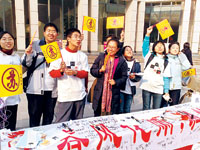 “春風(fēng)化雨,潤物如‘蘇’”。昨天上午在北京大學(xué)百年講堂前,十幾名學(xué)生手舉“蘇”字黃旗齊呼:“歡迎支持蘇彥捷老師……”有12年歷史的北大“十佳教師”評(píng)選昨日開始。由于三角地的拆除,因此這是北大歷史上首次將“尊師墻”移至百年講堂前,而各院系也首次被集中在一起為候選人拉票吶喊。一時(shí)間,各家吹拉彈唱,“有一種‘快男超女’現(xiàn)場(chǎng)拉票時(shí)的感覺。”許多北大學(xué)生表示。