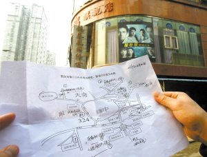 他們精心繪制的網吧地圖,清晰標注了網吧的具體位置,周圍有什么建筑物。這10家網吧呈圓形狀排列,將學校團團包圍。