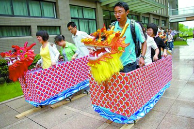 除了吃粽子和看龍舟賽,大學(xué)生在端午節(jié)還可以做些什么呢?在端午節(jié)即將到來之際,華東師大舉辦了一場“首屆端午文化節(jié)”。文化節(jié)上,大學(xué)生們看表演、穿古裝、賽旱船、學(xué)剪紙、賽詩歌,他們不僅嘗試了端午節(jié)的另一種“過法”,也在歡樂的氣氛中感受到了中華民族的傳統(tǒng)風(fēng)俗和文化。