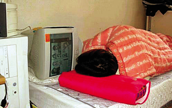 宿舍內(nèi)還有另外兩個(gè)室友留校,不過(guò)他們每天早出晚歸都很忙。沒(méi)過(guò)幾天,小謝就開(kāi)始感覺(jué)到寂寞,自己好像被人遺忘了。呆在宿舍的生活也毫無(wú)規(guī)律,每天睡到中午一點(diǎn)左右,醒來(lái)時(shí),空蕩蕩的宿舍里僅剩下他一個(gè)人,剛爬下床還沒(méi)來(lái)得及去洗手間,第一件事就很順手地打開(kāi)電腦。隨便吃一包泡面,就開(kāi)始了一天的電腦生活。晚上七點(diǎn)吃晚餐,有時(shí)泡面解決。玩電腦到深夜是必然的事,所以不能沒(méi)有宵夜。有時(shí)班上總會(huì)有男生煮東西,會(huì)一起吃,不然隨便吃點(diǎn)零食充饑。