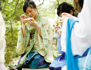本報訊 (記者 沈軼倫 實習生 顧薇)昨天,民間社團“漢未央”在中山公園組織了一場七夕乞巧祈福活動。女孩們身著漢服,頭戴金釵,模仿古人開展七夕乞巧祈福活動。