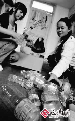 近日,記者路過昆明學院醫學院(原昆明市衛生學校)時,遇見三五成群的學生把廢棄的飲料瓶拿繩子拴著抬著走出校門,一打聽才知道原來是學生們撿飲料瓶賣后換成錢當班費。學校黨委副書記曹全科昨天告訴記者:“這種做法是10年前就開始養成的,如今學生撿飲料瓶攢班費在學校里蔚然成風,全校28個班級的2000多名大學生都自覺撿瓶子、賣瓶子,錢拿來當做班費。”